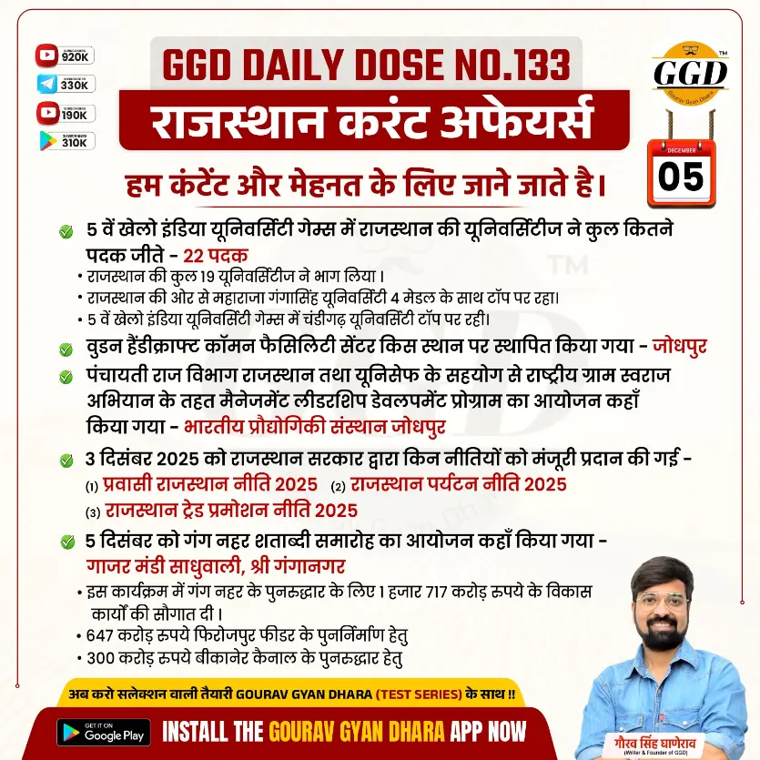 (4) 3 दिसंबर 2025 को राजस्थान सरकार द्वारा किन नीतियों को मंजूरी प्रदान की गई – (1) प्रवासी राजस्थान नीति 2025