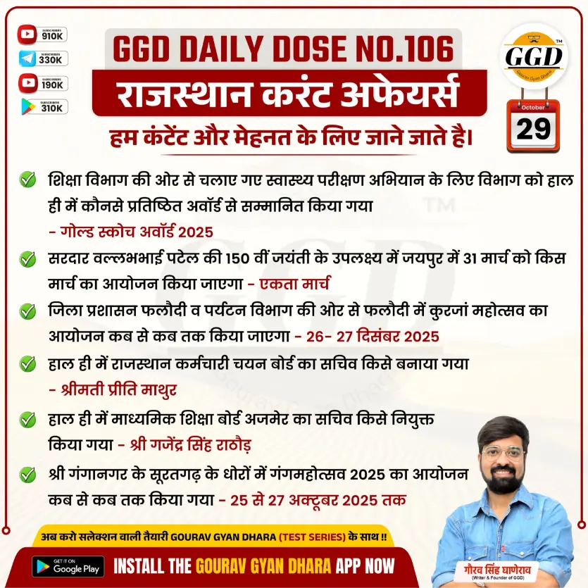 (5) प्रखर राजस्थान 2.0 के तहत राजकीय विद्यालयों में एकता दिवस व मेगा PTM का आयोजन कब किया जाएगा – 31 अक्टूबर को