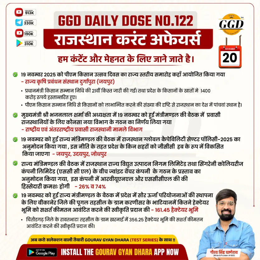 ③19 नवम्बर को हुई राज्य मंत्रिमण्डल की बैठक में राजस्थान ग्लोबल कैपेबिलिटी सेण्टर पॉलिसी-2025 का अनुमोदन किया गया , इस नीति के तहत प्रदेश के किन शहरों को जीसीसी हब के रूप में विकसित किया जाएगा – जयपुर, उदयपुर, जोधपुर