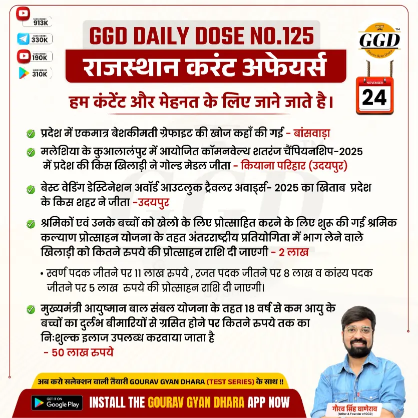 (2) मलेशिया के कुआलालंपुर में आयोजित कॉमनवेल्थ शतरंज चैंपियनशिप-2025 में प्रदेश की किस खिलाड़ी ने गोल्ड मेडल जीता – कियाना परिहार (उदयपुर)