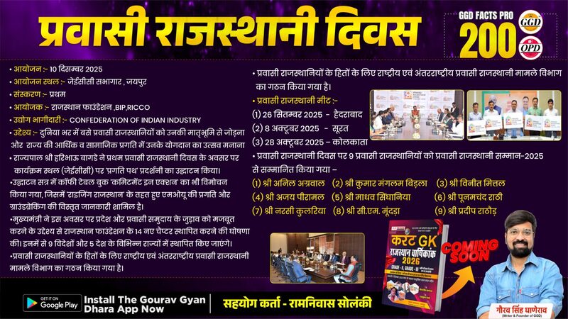 • प्रवासी राजस्थानी दिवस पर9 प्रवासी राजस्थानियों को प्रवासी राजस्थानी सम्मान-2025 से सम्मानित किया गया –