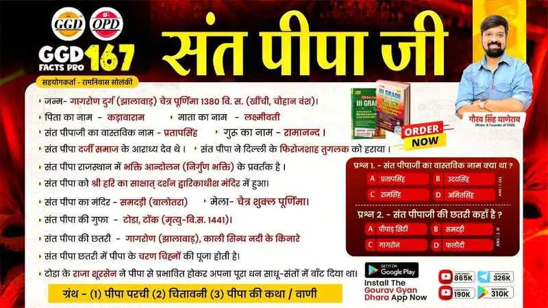 ◆ संत पीपाजी का वास्तविक नाम – प्रतापसिंह,