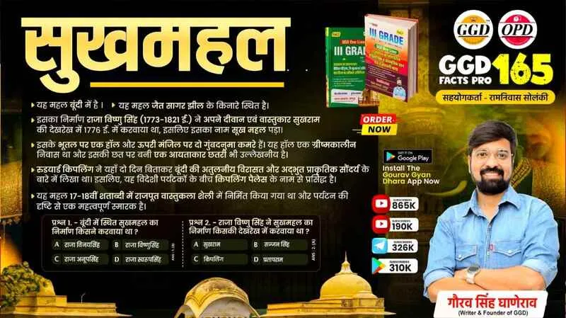प्र:- राजा विष्णु सिंह ने सुखमहल का निर्माण किसकी देखरेख में करवाया था ?