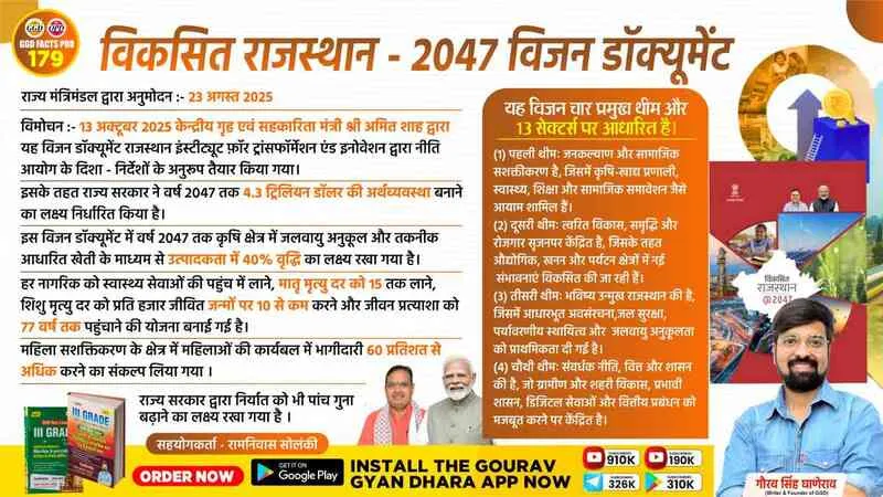 - यह विजन डॉक्यूमेंट राजस्थान इंस्टीट्यूट फ़ॉर ट्रांसफॉर्मेशन एंड इनोवेशन द्वारा नीति आयोग के दिशा – निर्देशों के अनुरूप तैयार किया गया।